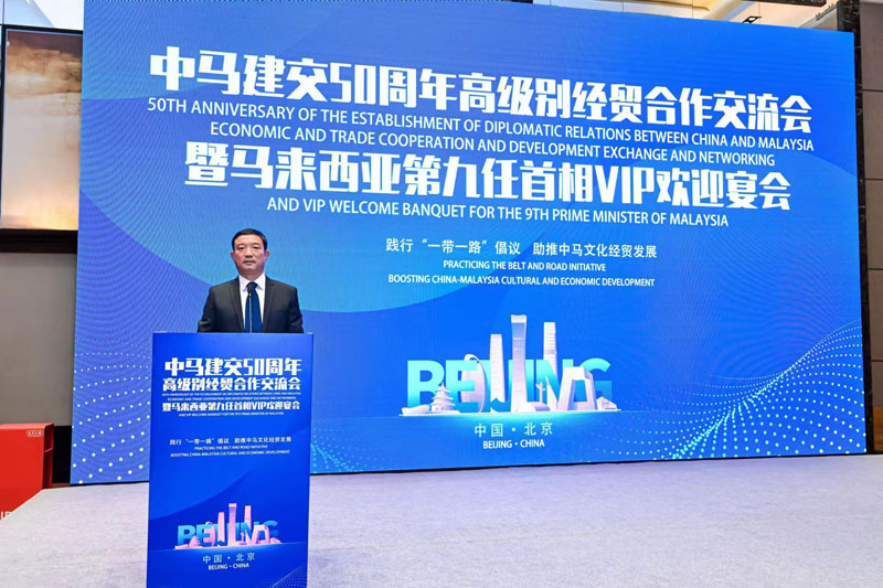 中马建交50周年高级别经贸合作交流会暨马来西亚第九任首相欢迎晚宴在京举行,青岛开云官方网页版官网机械董事长王勇受邀出席。