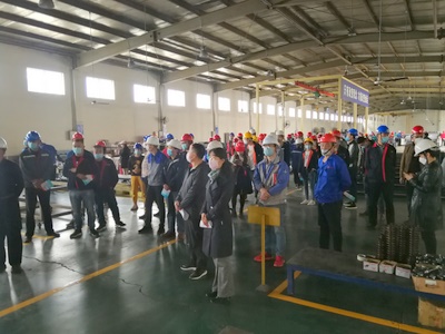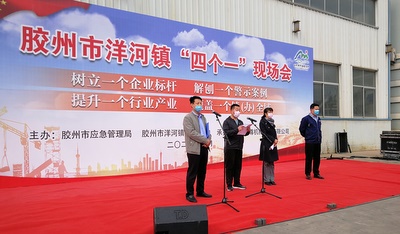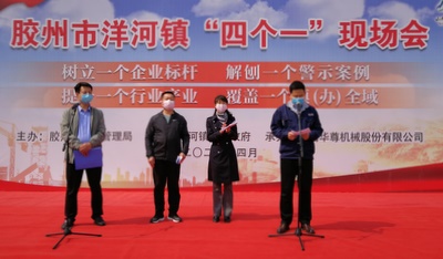 2020年4月27日,胶州市洋河镇人民政府工会温主席、胶州市应急管理局陈局长、胶州市洋河镇安监办王主任、以及胶州市洋河镇机械加工行业各企业负责人、企业安全员等100多人在我公司召开了胶州市洋河镇“四个一”现场会。