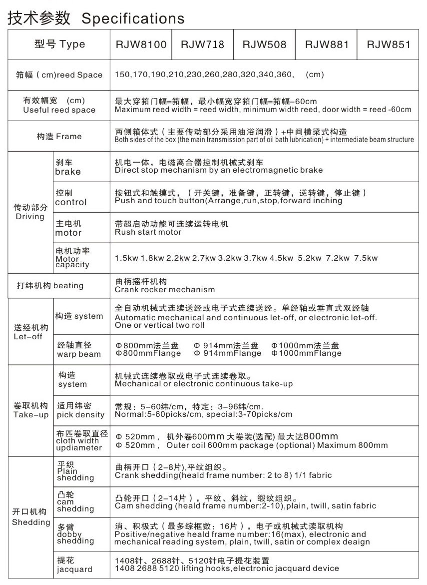 通过缩短织前布经路,使更高密度的稳定织造成为了可能。从细支纱到粗支纱,从窄幅到宽幅,以至不平衡组织的织物,用以期待能对应更广泛的织造产品。