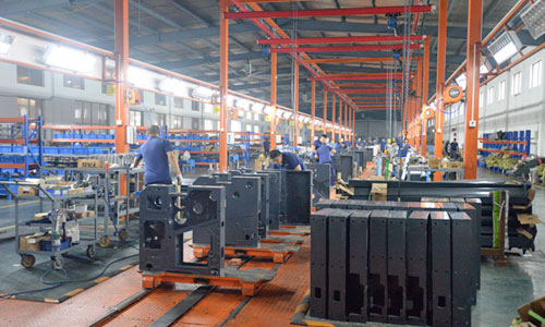 采用CNC加工中心成套加工关键零部件,使产品一次精加工完成,高精度的进口加工中心,成套加工左右墙扳,确保设备两侧齿轮同轴旋转,降低产品运转时产生的震动和噪音,提高织机稳定性及开机率。